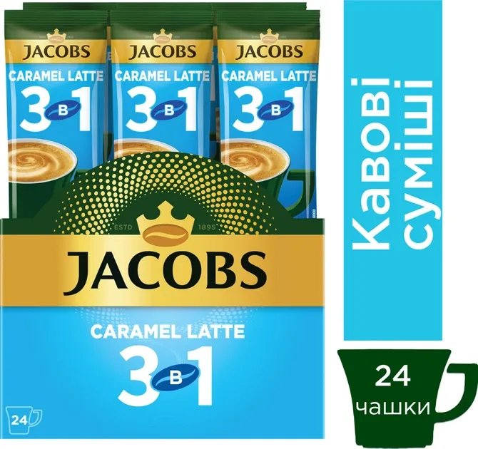Кофейный напиток Jacobs 3 in 1 Caramel Latte 24 x 12.3 г (4820206290588)